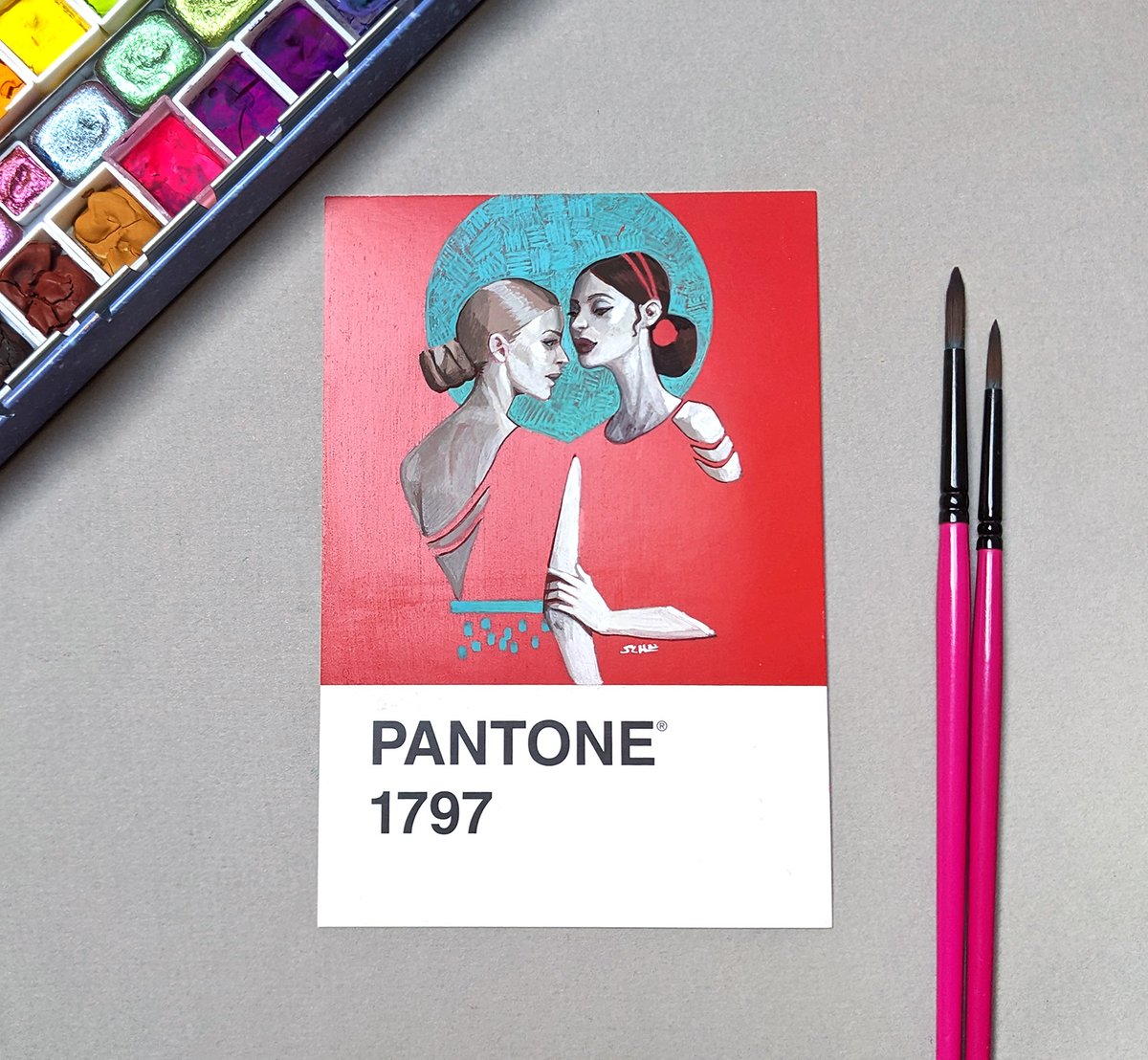 I'm dipping in and out of #huevember this year with some small trad paintings with these pantone postcards I saw another artist doing an art challenge with on YT.