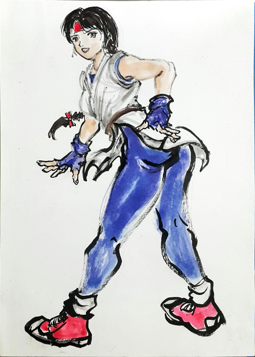 ユリ・サカザキを描いてみた。 龍虎の拳1ではさらわれたヒロインだったが、続編の2で戦うヒロインになって完全にキャラが変わってびっくりした。