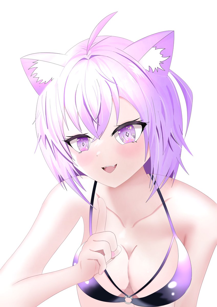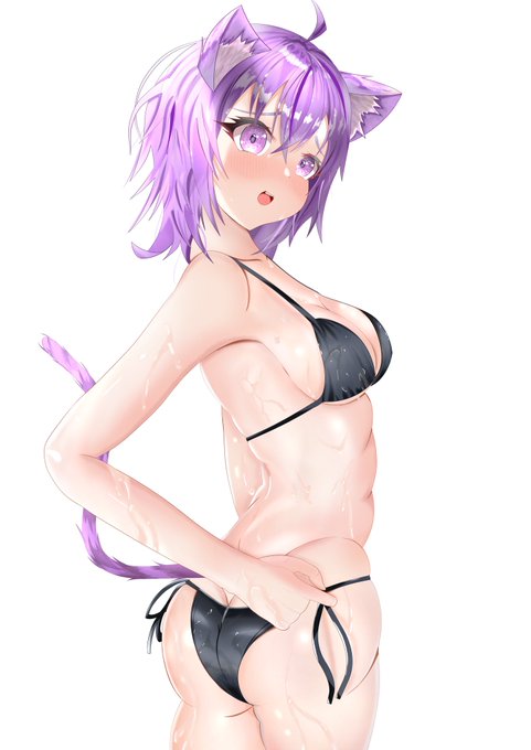 新しい絵 どんどん色塗りできるようになってる気が 水着の紐が解けたおかゆん おかゆん「見えた?\\\」 #ホロライブ #絵かゆ #ほっぺの斜線は可愛い