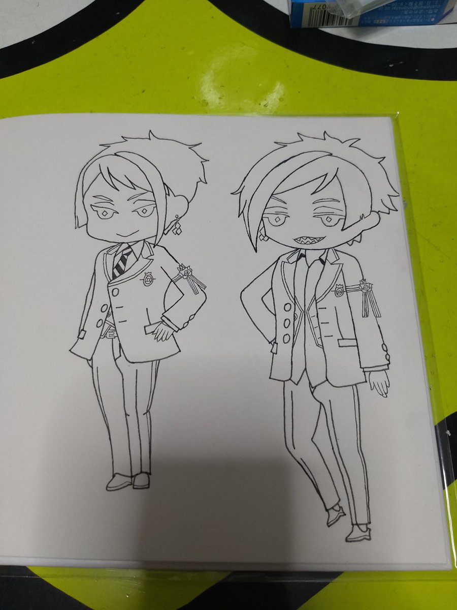 1 1 把繪畫過程都放出來,這個是ジェイド跟フロイド校服R卡的小人 #ツイステファンアート #twistedwonderland 20/07/18 06:57