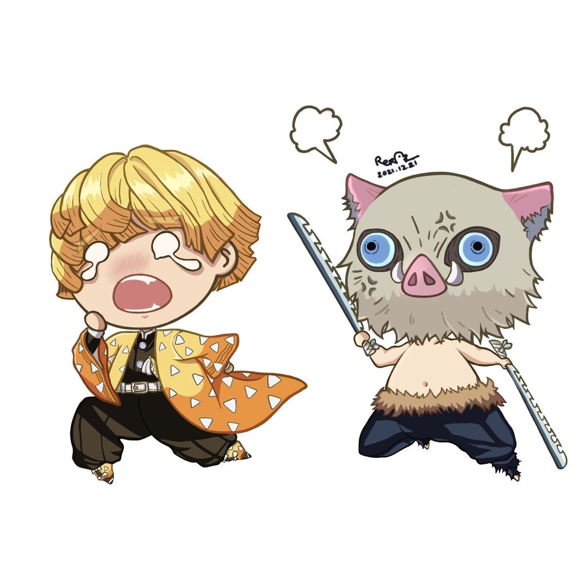 I don't know why but I like Zenitsu and Inosuke' Character a lot! They are so funny 鬼滅の刃!ムービーも見ました。凄く感動しましたわ😭 🌱👇👇🌱Follow to support linktr.ee/zerokara_doodle #DemonSlayer #Fanart #CHIBI #鬼滅の刃ファンアート #Procreate #イラスト #鬼滅の刃 #illust