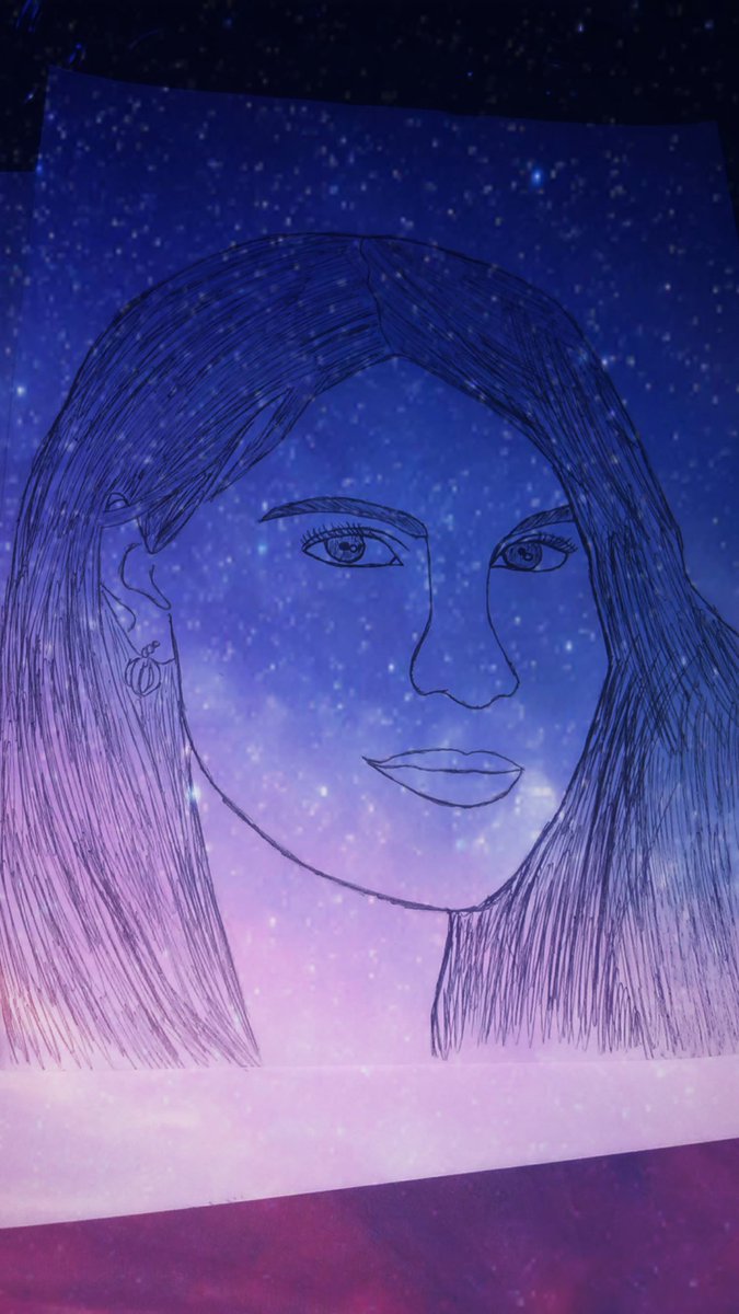 #DechartInktober Day 20: Spaaaaace. I did this both analog, and digital. I did an ink drawing of @AmeliaRBlaire and then added a digital Galaxy filter to the photo. #Inktober2019 @BryanDechart