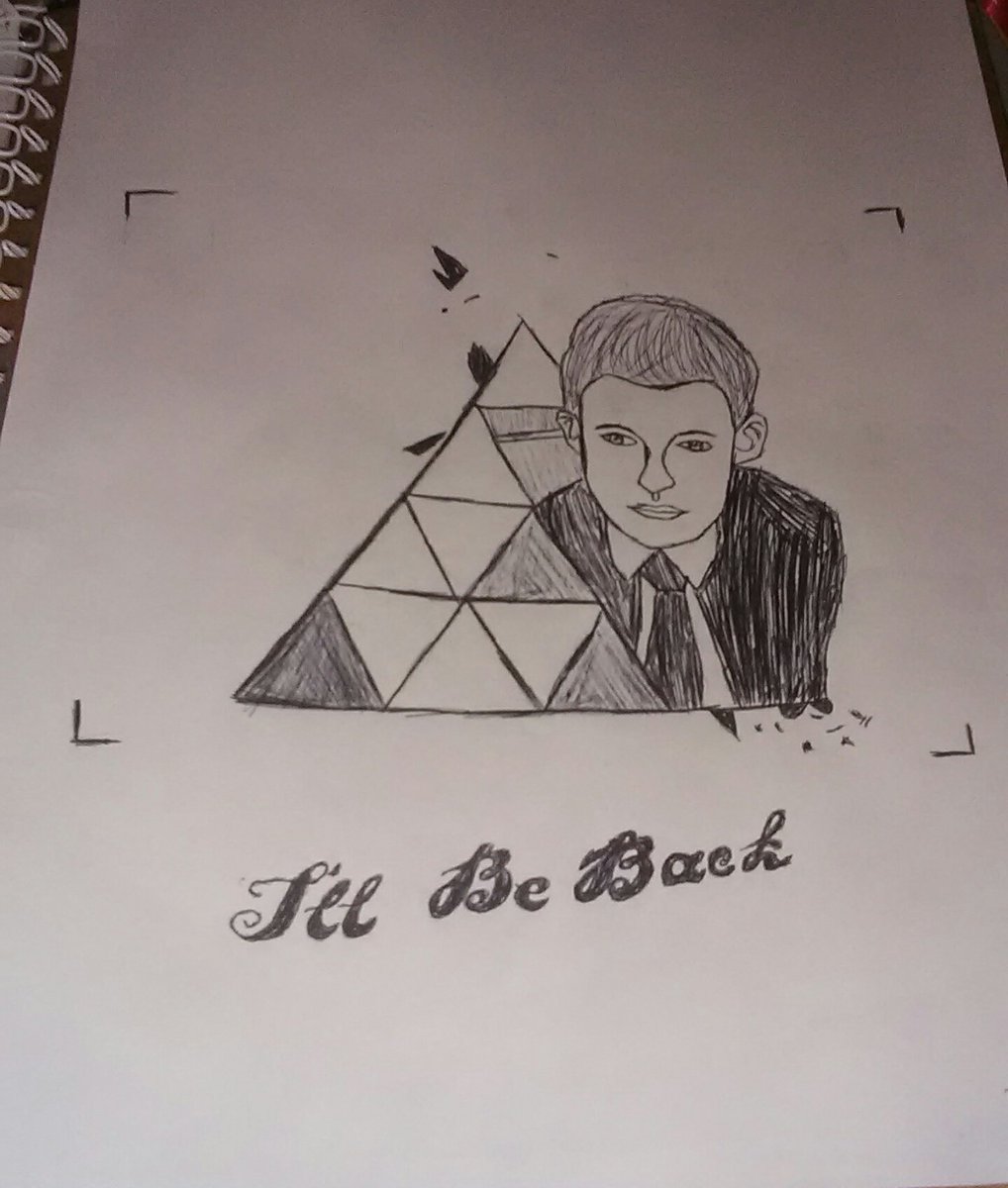 #DechartInktober Day 29: "I'll Be Back" Trophy. I went a bit fancy and did the words in calligraphy #Inktober2019 #DetroitBecomeHuman @BryanDechart @AmeliaRBlaire
