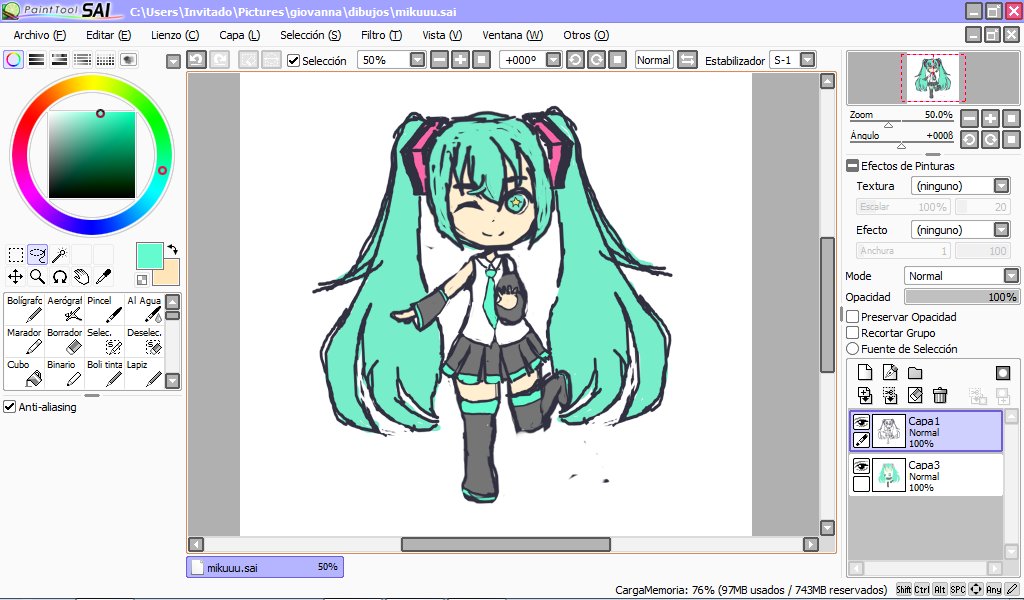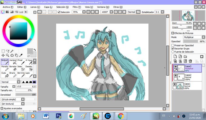 dibujo de Hatsune Miku realizado a mouse en paint tool sai #HatsuneMiku #HatsuneMikuDraw #VOCALOID #anime #fanart #dibujo #digitalart #art #drawing #FelizSabado #Miku #dibujodigital