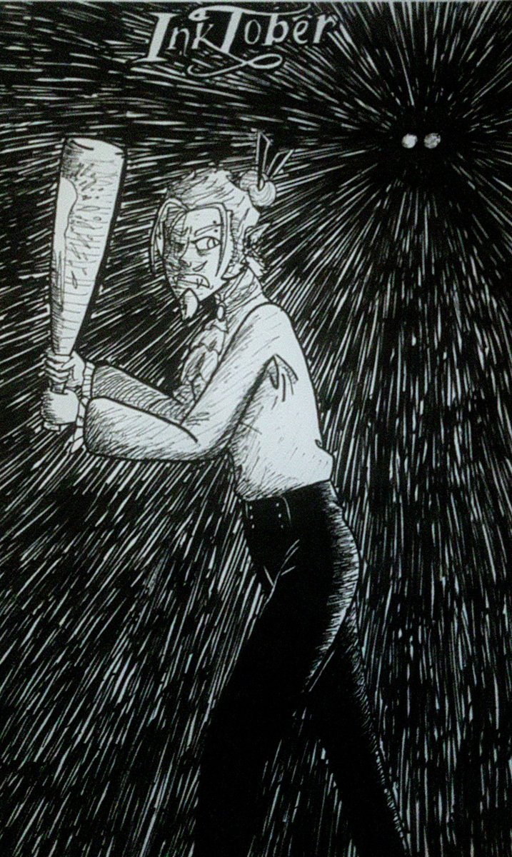 Inktober du jour du coup, le thème était "chauve souris" mais comme c'est bat en anglais on se retrouve avec un vampire avec une batte à la main #inktober2022 #inktoberday3 #drawing