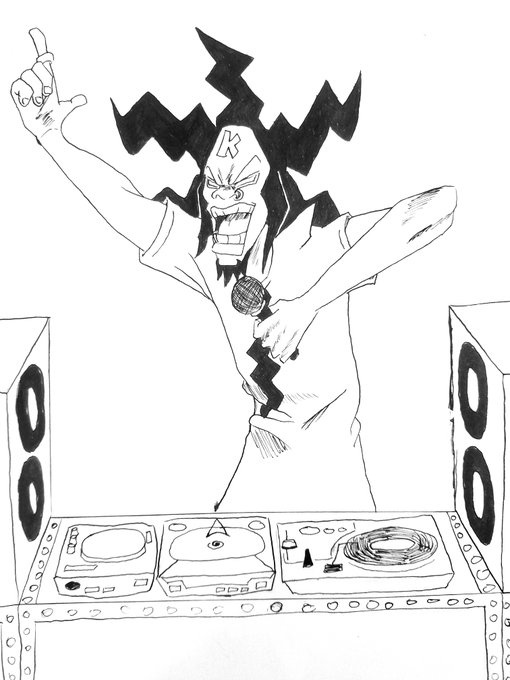 "Hey out there! This is Tokyo's very own, #1, pirate powerstation, JET SET RADIO!!!!!!!!!!" I'm pretty busy with homework today, so sorry the line art is so rough. Either way, I couldn't NOT do my man, DJ Professor K! #Inktober #Inktober2020 #JetSetRadio