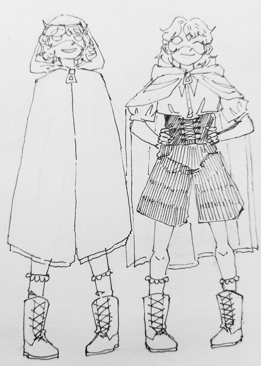 a small concept of Wilbur and Techno costumes for "Wishes and Family" on Ao3 because damn it is so cool i love this story so much orz #technofanart #wilburfanart #wishes_and_family