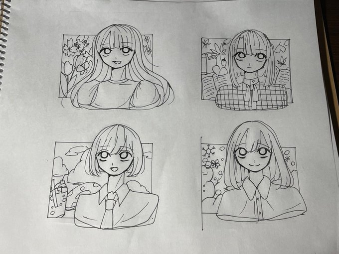春夏秋冬の女の子たち🌸☁️🍁❄️ まだ色は塗ってないけど🎨 #イラスト #女の子 #絵 #アニメ #漫画 #アニメ好きと繋がりたい #イラスト好きと繋がりたい #オリキャラ #漫画好きと繋がりたい #線画 #コピック #らくがき #お絵描き