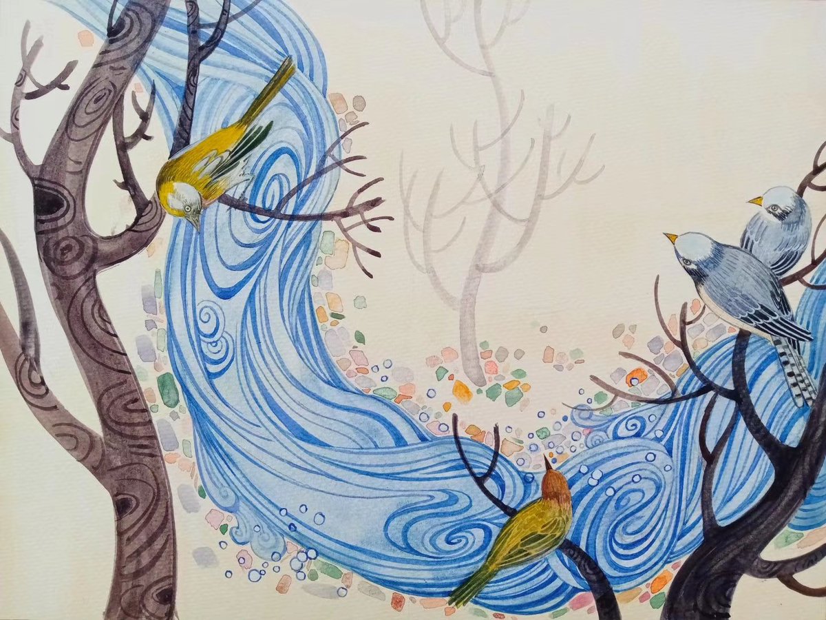 My Illustration. it's cover I painted for a fairy tale. It is a story about forests, rivers and birds. #Watercolors #painting #drawing #illustration