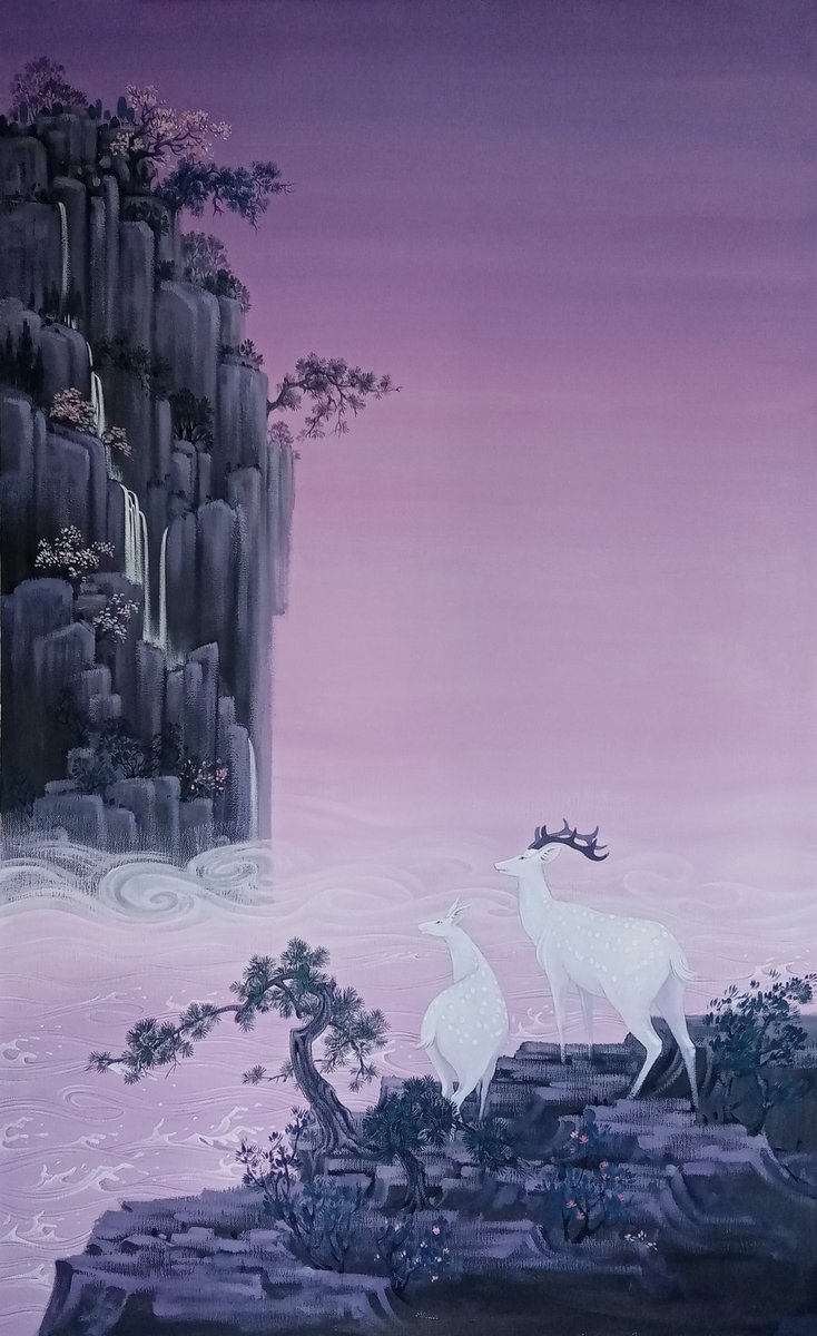My oil painting. Pink wonderland. Can it make you more peaceful? #ArtistOnTwitter #oilpainting #chineseart #originalart