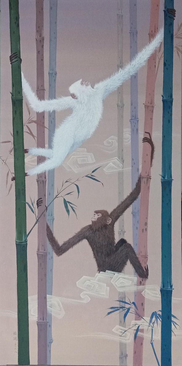 My work.<The dance from wonderland> .Oil on canvas.150x80cm #oilpainting #paintings #ArtistOnTwitter #originalart #animals #drawings