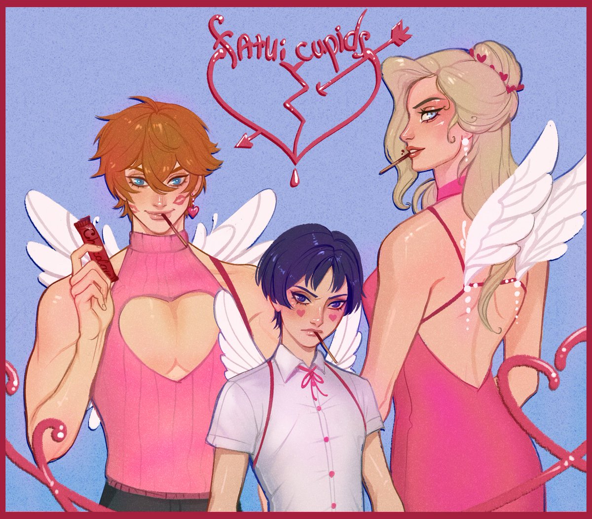 Happy Valentine's Day! Have some festive Fatui propaganda ♥️ #genshinimpactfanart #fatui #childe #scaramouche #lasignora #ValentinesDay