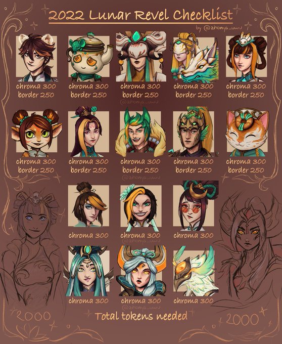 a lil sheet I made for myself since the I got overwhelmed with amount of chromas in the event shop and thought it would be a shame not to share 👉👈 (also kinda just wanted to draw the chromas bcs they deserve love too) #ArtofLegends ? #LeagueOfLegends