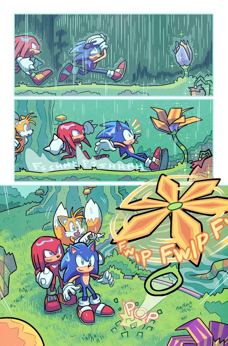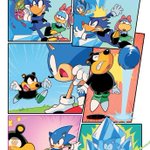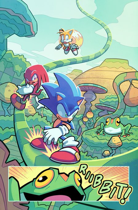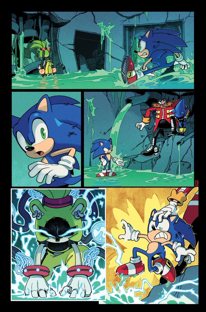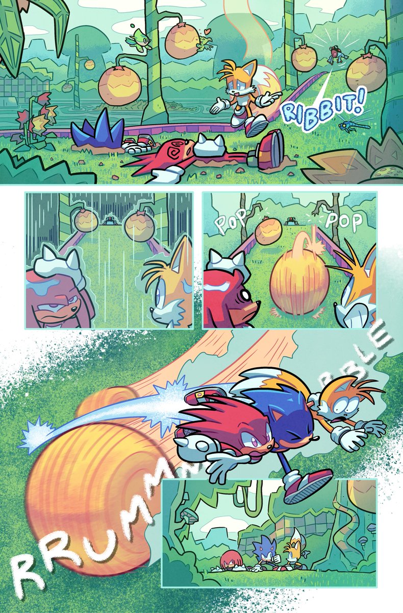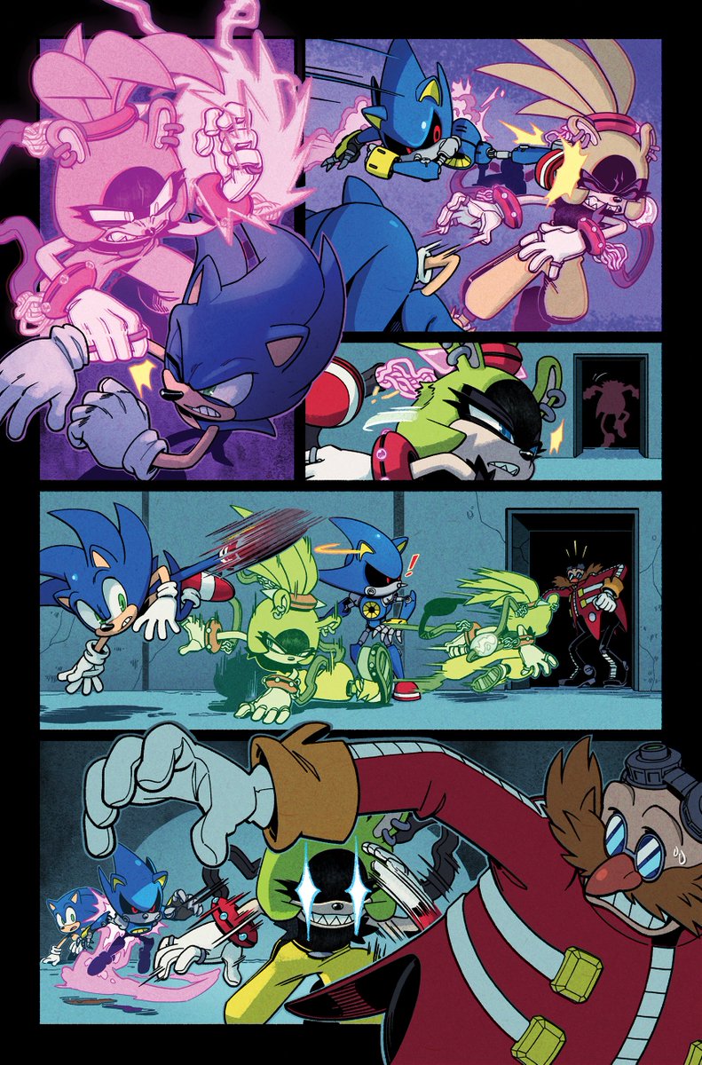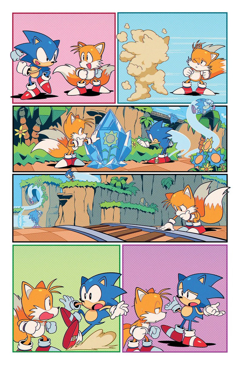 A couple MORE pages I colored for Sonic 56! Fun fact, @SpiritSonic (who drew these of course) also did a lot of the texture shading you see in the backgrounds in this issue, as well as on that lovely panel of rainbow Surge! 🌈 twitter.com/Ziggyfin/statu…