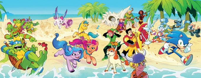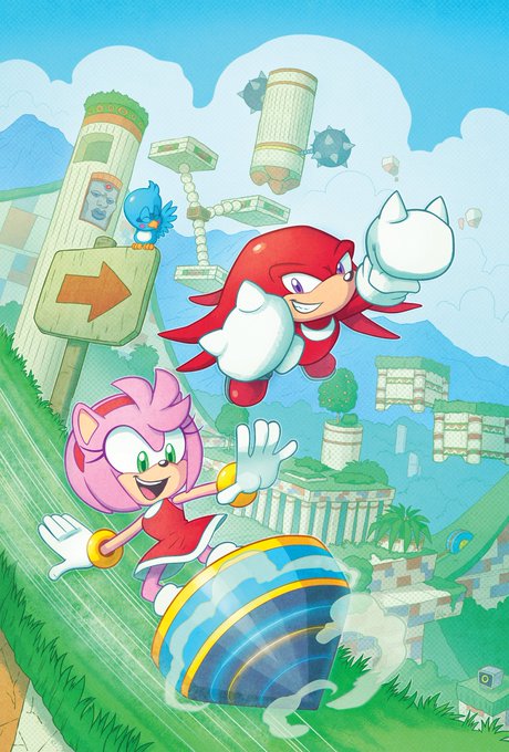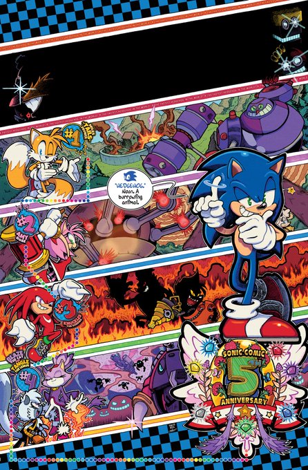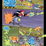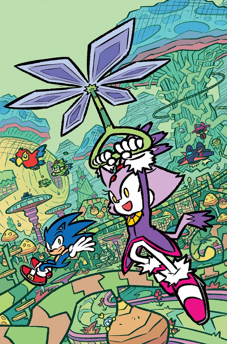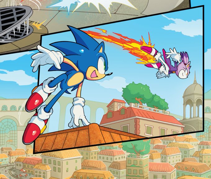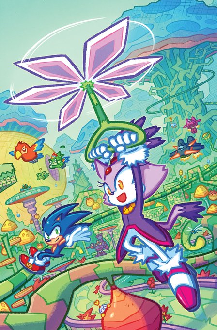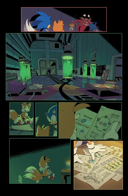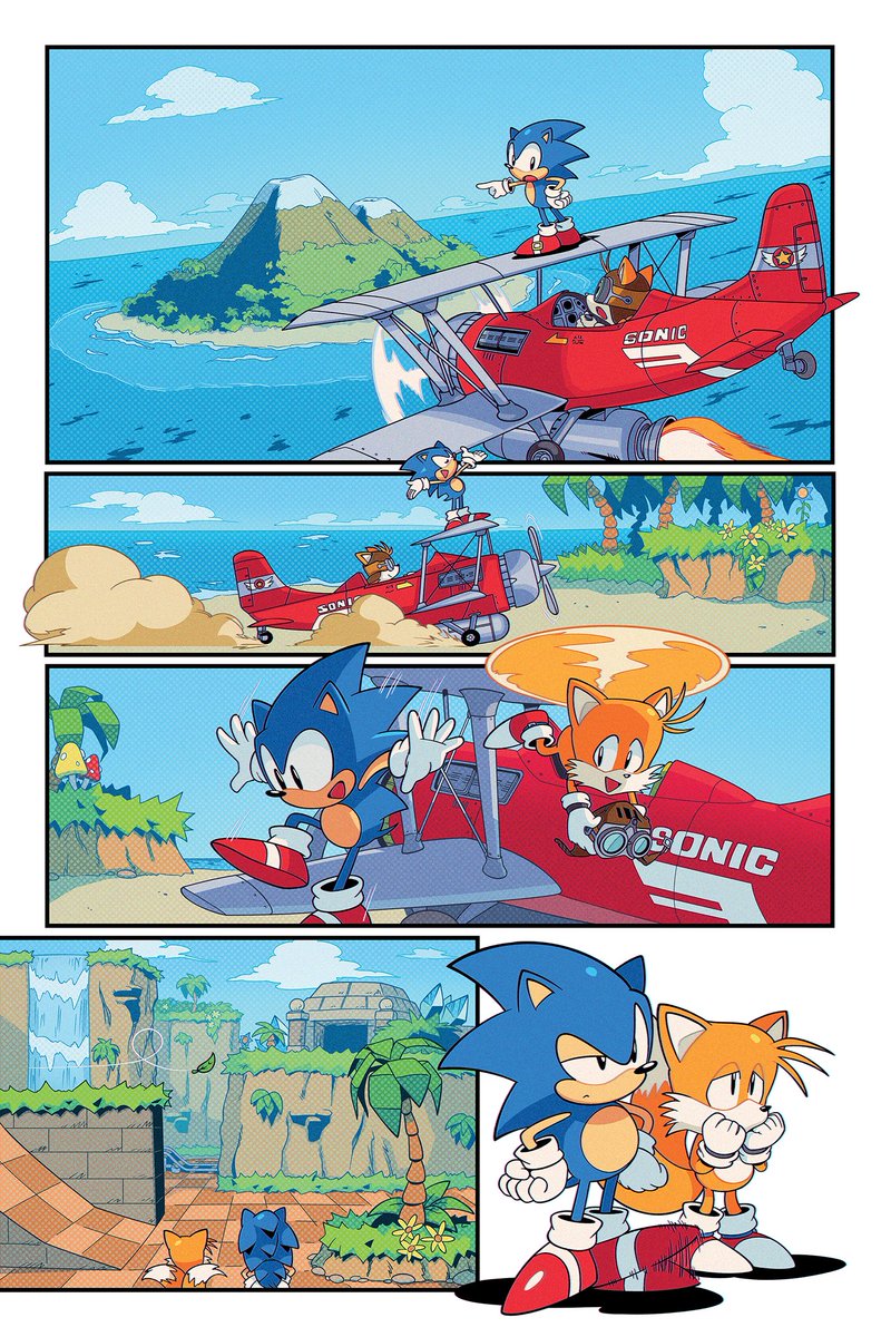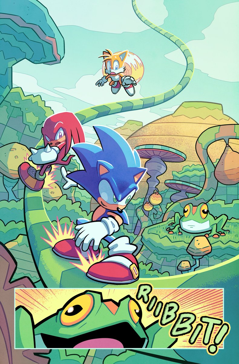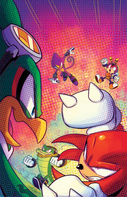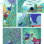 A couple MORE pages I colored for Sonic 56! Fun fact, @SpiritSonic (who drew these of course) also did a lot of the texture shading you see in the backgrounds in this issue, as well as on that lovely panel of rainbow Surge! 🌈 twitter.com/Ziggyfin/statu…