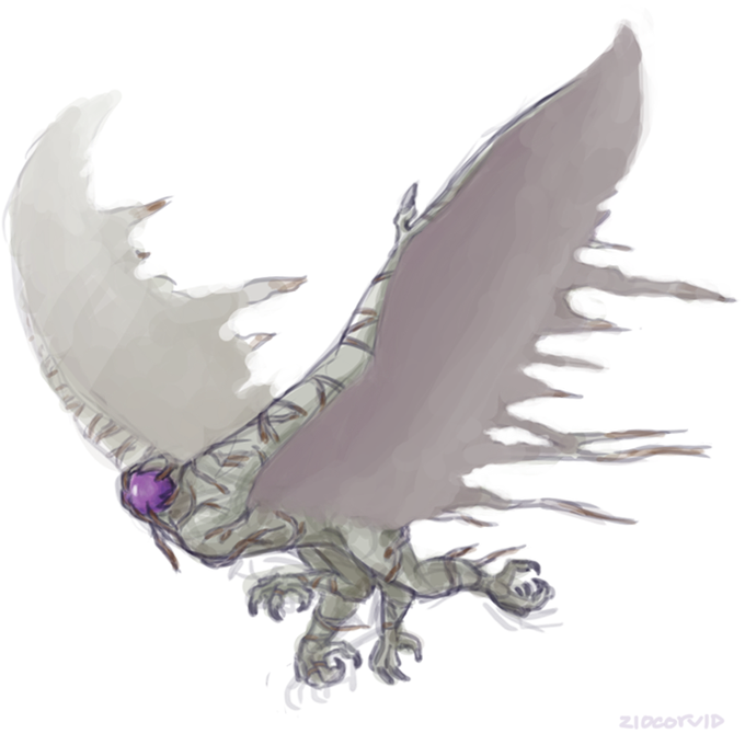 - pterodactyl-ish (leathery wings) - taloned legs (multitudes) - streamers (something coming off its wings,roots?) - no head (singular purple eye sitting in its torso) molaesmyr chernobyl has some neat things #criticalrolefanart #CriticalRoleArt #criticalrolespoilers