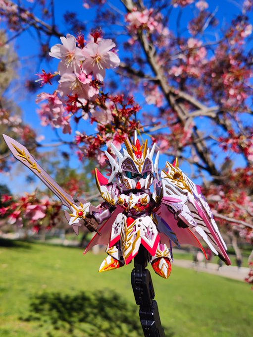 Finally, the cherry blossom is blooming and the weather is nice. 🌸💮 I'm back here again with my Wing Zero. This year he has a new companion knight Strike Gundam. #SDガンダム#ガンプラ