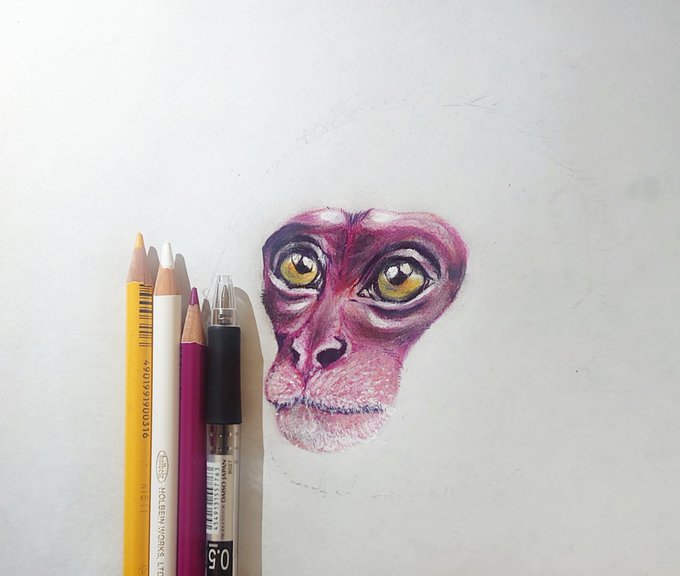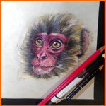 Japanese monkey with colored pencil. お猿さんの顔(´・ω・`) 次回でお毛々含む全体像を描きます。 制作時間:2時間弱✏️ ボールペン、色鉛筆、4B鉛筆、ホワイトペン、消しゴム メイキング動画 youtube.com/shorts/BsVKFGQ… #絵 #イラスト #色鉛筆画 #illust #illustration #動物