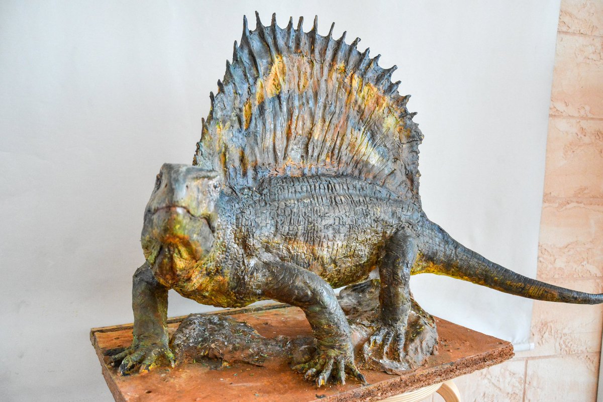 Dimetrodon teutonis, life size. Sculpted in resting pushup pose for Bromacker contest. #SynapsidWeek #SynapsidJune #PaleoThemeWeek #paleoart #permian #sculpting #Dimetrodon