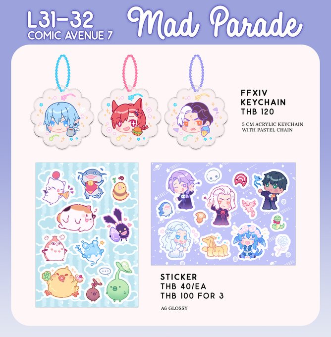 2 4 My first FFXIV merch! Tomorrow I'm attending Comic Avenue in Bangkok, Thailand. If you're interested, please stop by at my booth L31-32 MAD PARADE 🥰 They will be available for pre-order online later #FFXIV #FFXIVART #FF14イラスト #FF14art 22/10/07 21:52