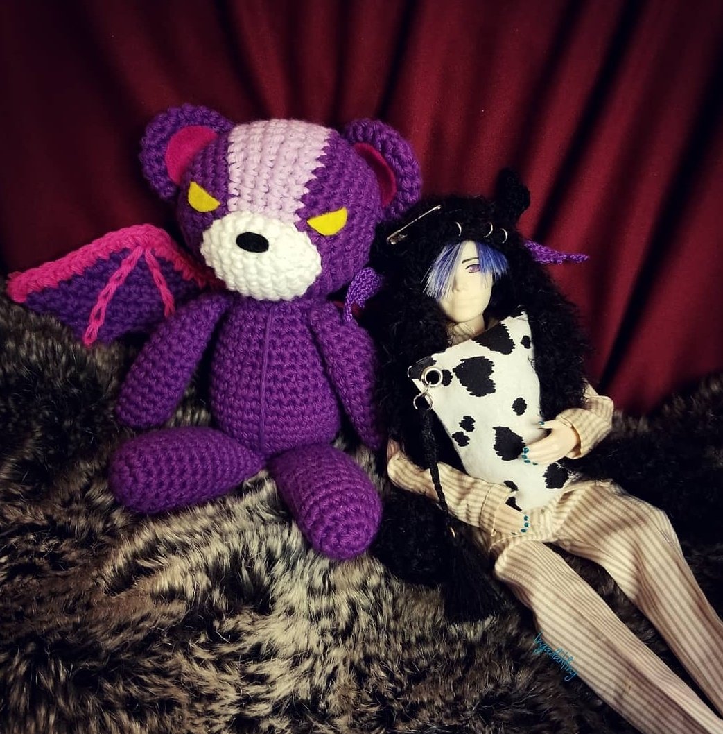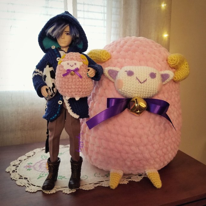 They're multiplying! 💜🐏💜 Now Belphie has his own just-right-for-him MC-chan to cuddle 😍 #ingadahlingsdollings #crochet #ObeyMeBelphegor #ObeyMeFanart #ObeyMeMCchan #ObeyMeMCplushie