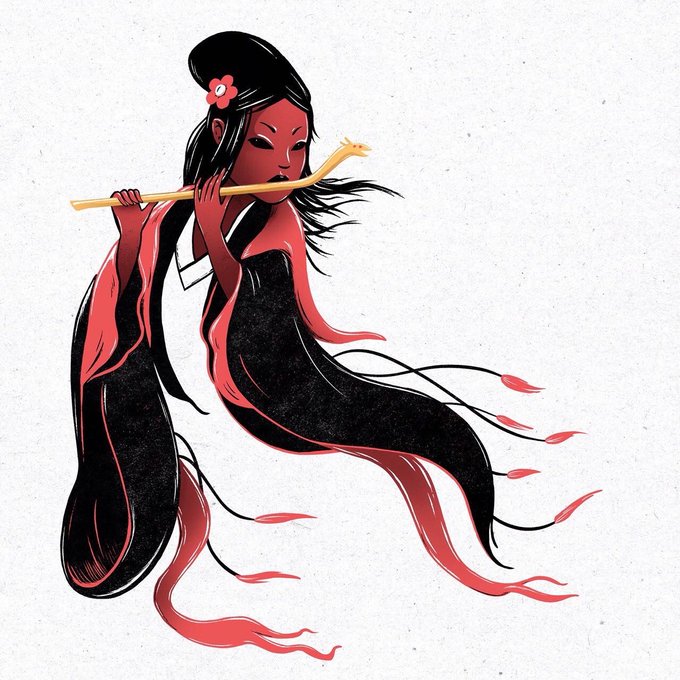 Day 332 - Krachtober - redrawing of Hosoda Eishi - Yang Gui Fei, 1818 #inktober #inktober2021 #illust #illo #illustration