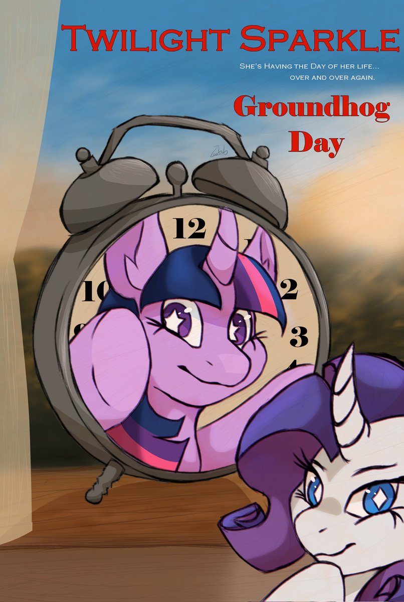Movie poster redraw! "She's having the day of her life.... Over and over again." Groundhog Day is one of my favorite movies and I wanted to redraw it with the girls 💕 #mlp #mlpfanart #mlpfim #mlpart #digitalart