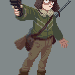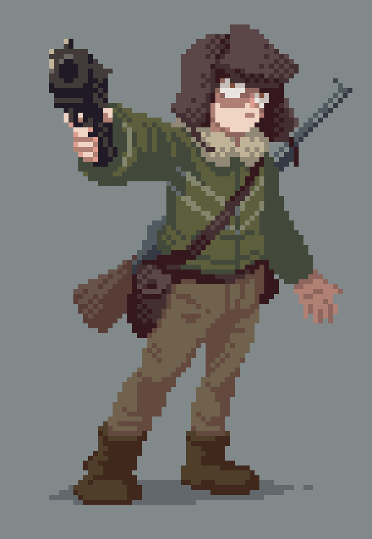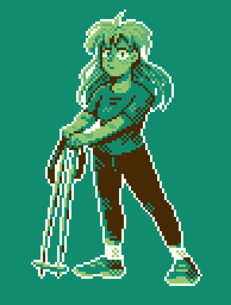 I wanted to do something green, so here it is me but with trekking poles #pixelart #ドット絵