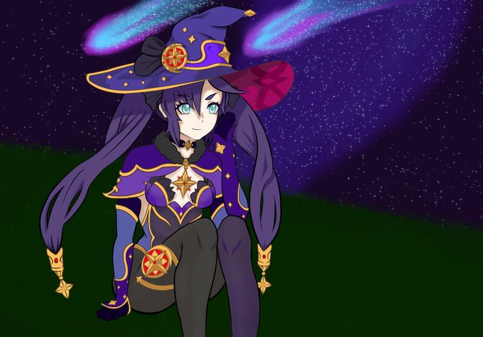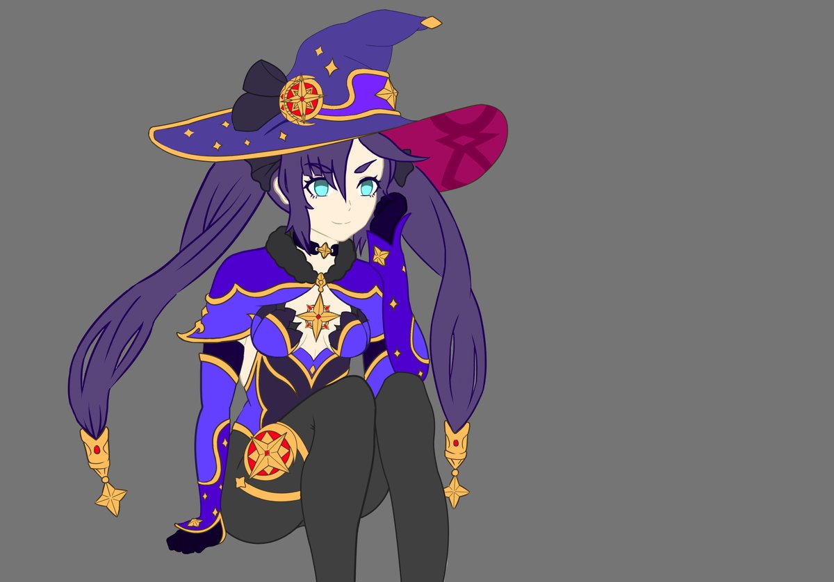 Flat colors for my Mona art. Probably gonna make it high enough quality to sell prints or something. #genshinimpactfanart #mona #fanart #genshinimpact