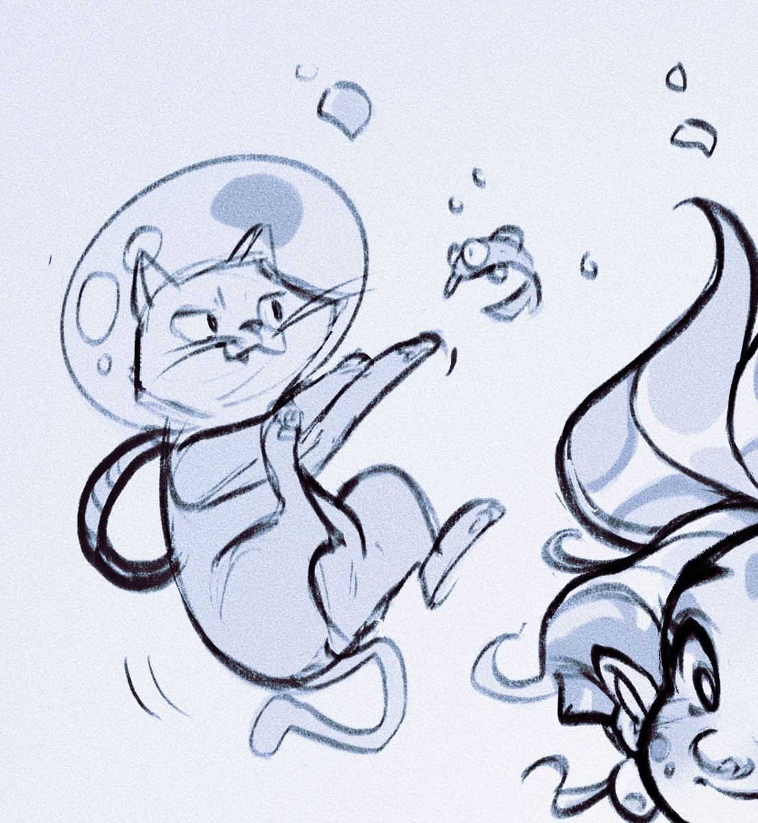 First prompt of #mermay was a #selfportrait 🫧 🧜♀️ So… I‘m late to the party but here it is! had to include my cats as well 🐈🐈⬛💕 it’s just a sketch but hope you like it!! 🫶💕 #digitalart #sketch #procreate #mermaid