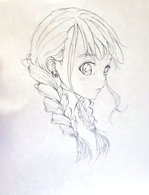 早く春が来ないかなぁ。三つ編みに挑戦。デコ広は直します笑 #イラスト練習中 #イラスト好きさんとつながりたい #絵描きさんと繋がりたい #お絵描き好きさんと繋がりたい #絵柄が好みって人にフォローされたい #アナログ絵 #アナログ絵描きさんと繋がりたい