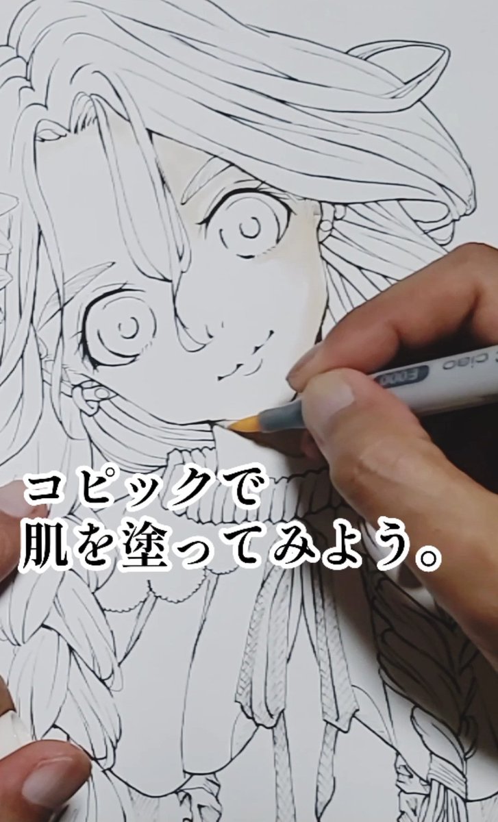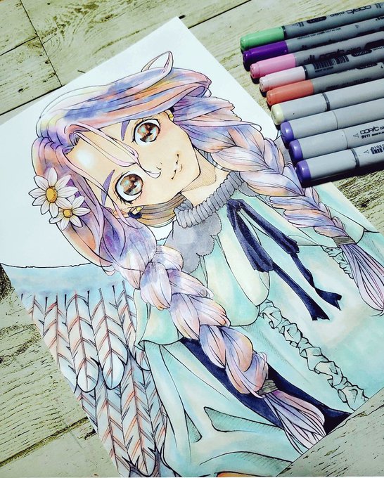 イラストの工程で肌と目を塗る時が一番好き。自分が描いたキャラに血が巡り始める瞬間?かな🎵 #絵描きさんと繋がりたい #春の創作クラスターフォロー祭り #お絵描き好きさんと繋がりたい #イラスト好きな人と繋がりたい #アナログ絵描きさんと繋がりたい #コピック #copic
