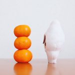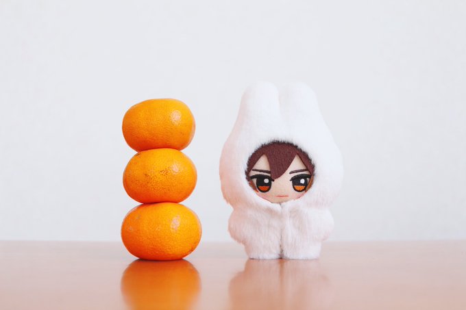 本当はみかん2.5個分の身長なのに着ぐるみで自分を大きく見せている🐰🍊