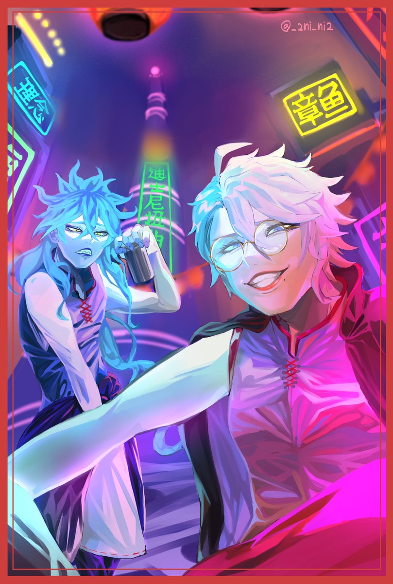 この度は素敵な企画に参加させて頂きありがとうございました〜!🙌 ボドゲ部で参加させて貰いました🙇♂️ 下記のタグから他の方の素晴らしい作品が拝めるので是非〜!😭🙏 #twst_電脳チャイナ企画 #twstファンアート #ツイステファンアート