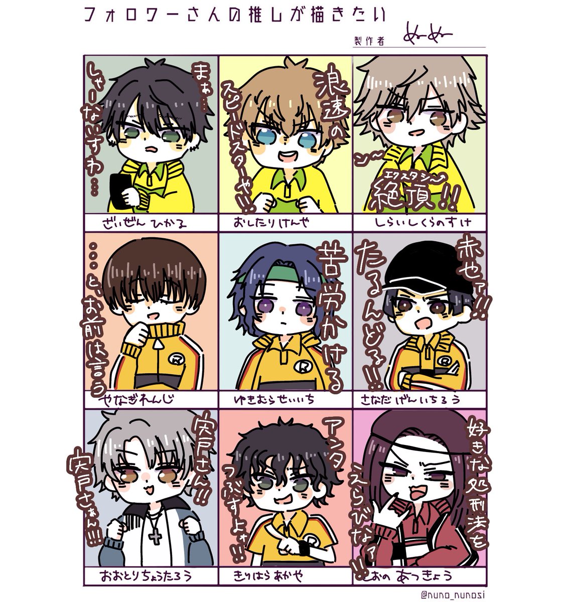 #フォロワーさんの推しが描きたい ありがとうございました!!!!初描きの子が多かったんでスピード勝負でザカザカかいてしまった~🥲🥲🥲ワイがスピードスターや⭐️(大嘘)