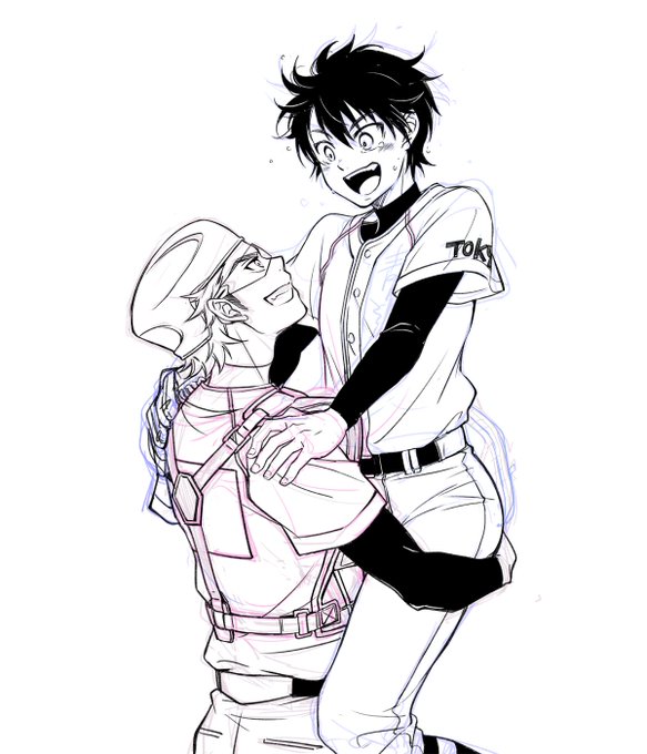 昨日♦更新待ちしてる間 沢を高く抱き上げて「俺のエース様自慢」する御が見たくて自分で描くかなって思って描いてたけど もういいかな😇✨お時間ある時に仕上げるわ