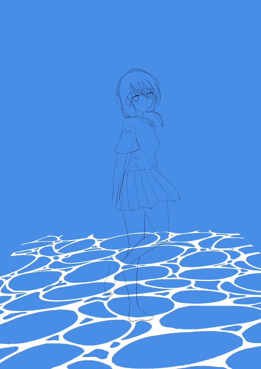 海の表現難しかった #このタグを見た人はラフ画とその完成絵を見せる #わたモテ