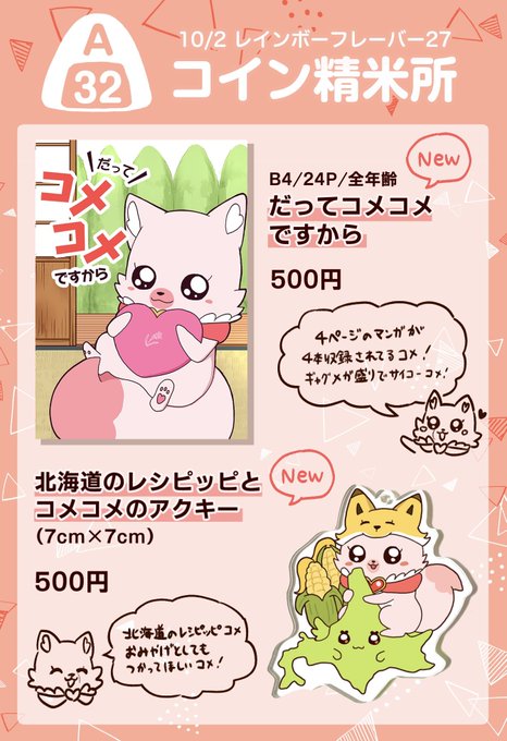 49 124 10/2 レインボーフレーバー27 ✨🌾お品書き🌾✨ レイフレ初参戦😤💪 新刊・グッズ出します‼️ 詳しい内容は下のツリー欄に載せていきたいと思います🦊🦊🦊 #レイフレ27 #レインボーフレーバー27 22/09/25 19:55