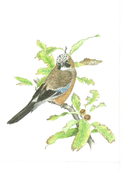 2 6 #今までで作画カロリーMAXの作品上げようぜ 多分人生で一番時間かけた水彩画 毛を一本一本書いて羽の立体感を出してるの今見ると頭おかしいことしてるなと思う 23/03/08 22:50