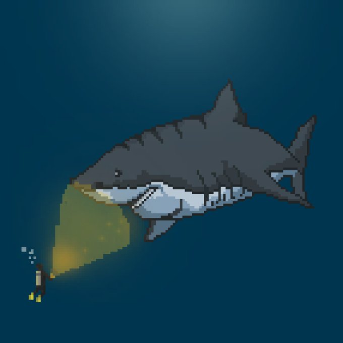 Megalodon - member of an extinct species of megatooth shark that is considered to be the largest shark that ever lived. What If Megalodon still existed? #SeaCreature for @Pixel_Dailies #pixel_dailies #pixelart #ドット絵 #aseprite #digitalart #pixelartist #pixel