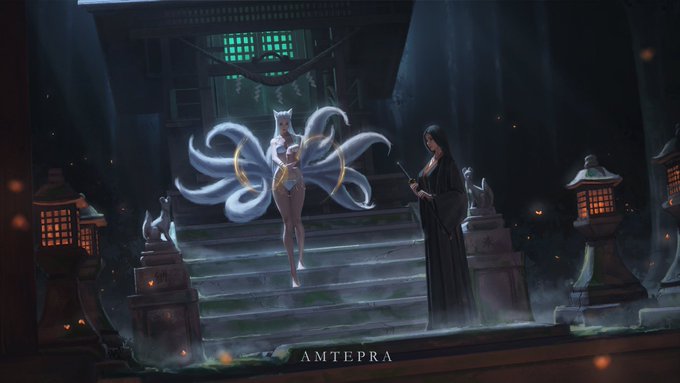 Myth6 椎名[Shiina]: "Welcome back master" Mind Spirit: "How's here in the mortal world?" 椎名[Shiina]: "Nothing to worry about master" Mind Spirit: "Good" (◡‿◡ )・*:.。.*・゜゚・*☆ #ArtistOnTwitter #illustration #イラスト #kitsune #shrine