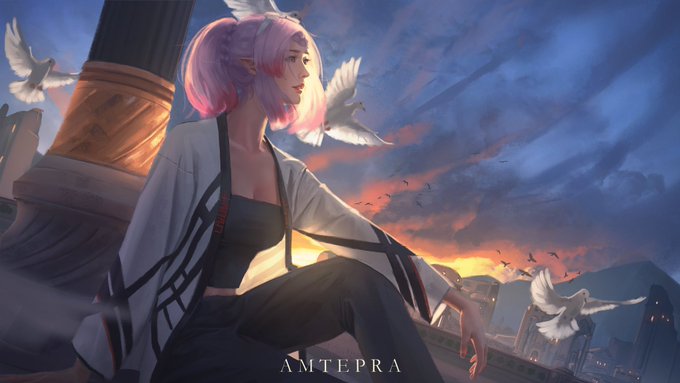 Sky spirit ⁽⁽ଘ( ˊᵕˋ )ଓ⁾⁾ Painting process 👇 youtu.be/Bf3kHBtKmW4 #artistsontwitter #illustration #イラスト #portrait #commissionsopen