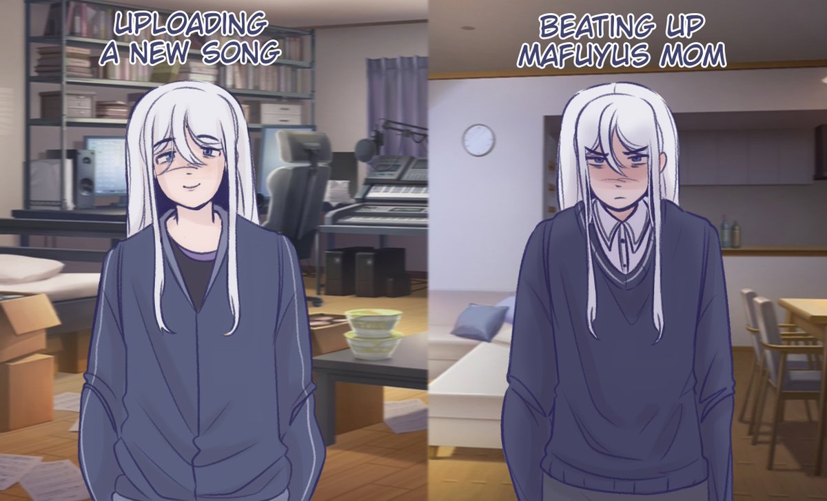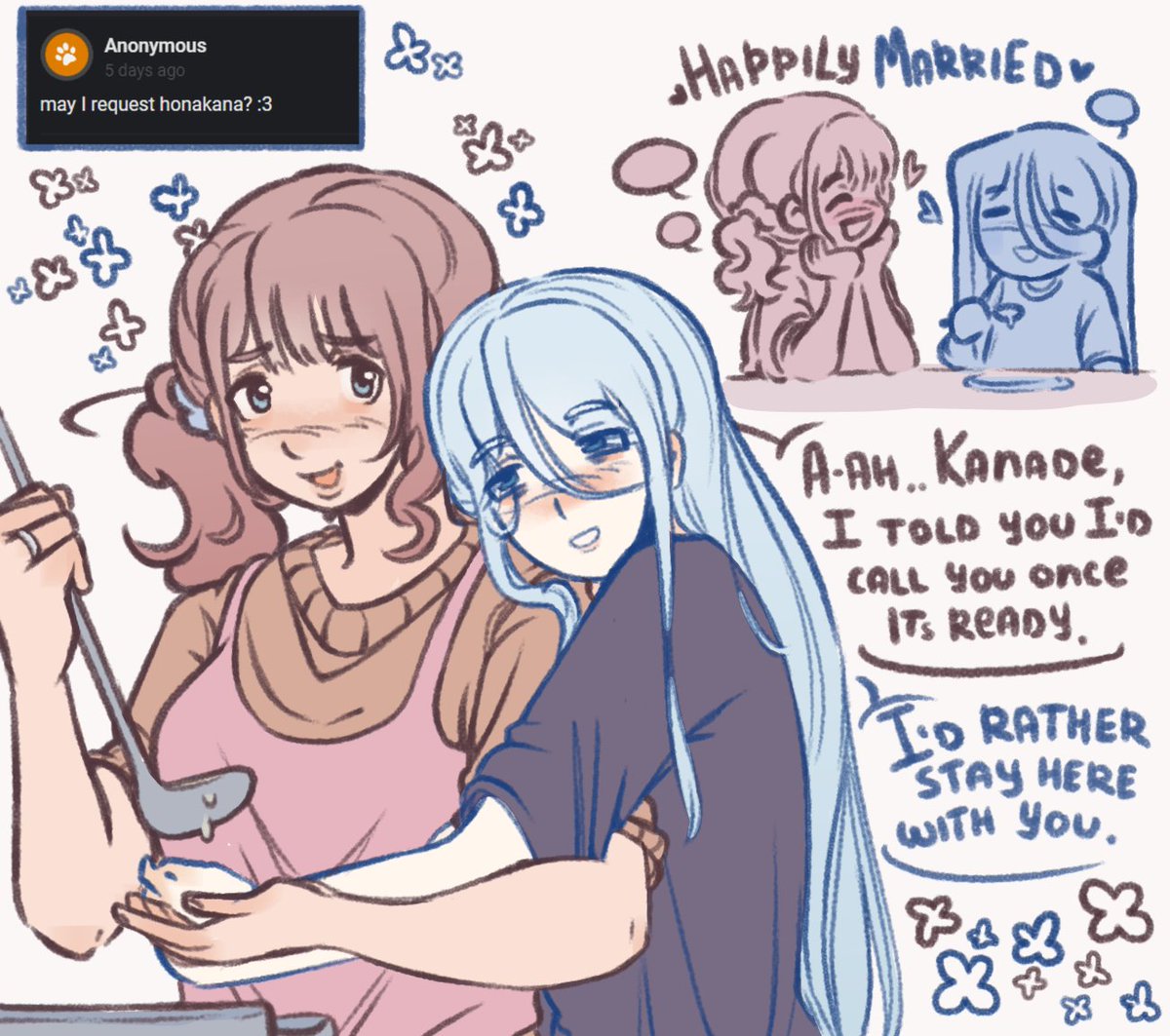 Anyways, what I wanted to say is: I love the way Mafuyu wholeheartedly trusts Kanade, how safe she feels around her. She knows that Kanade would never hurt her or blame her and that's AAFHJRHUTGH I JUST REALLY LOVE KANAMAFU OKAY