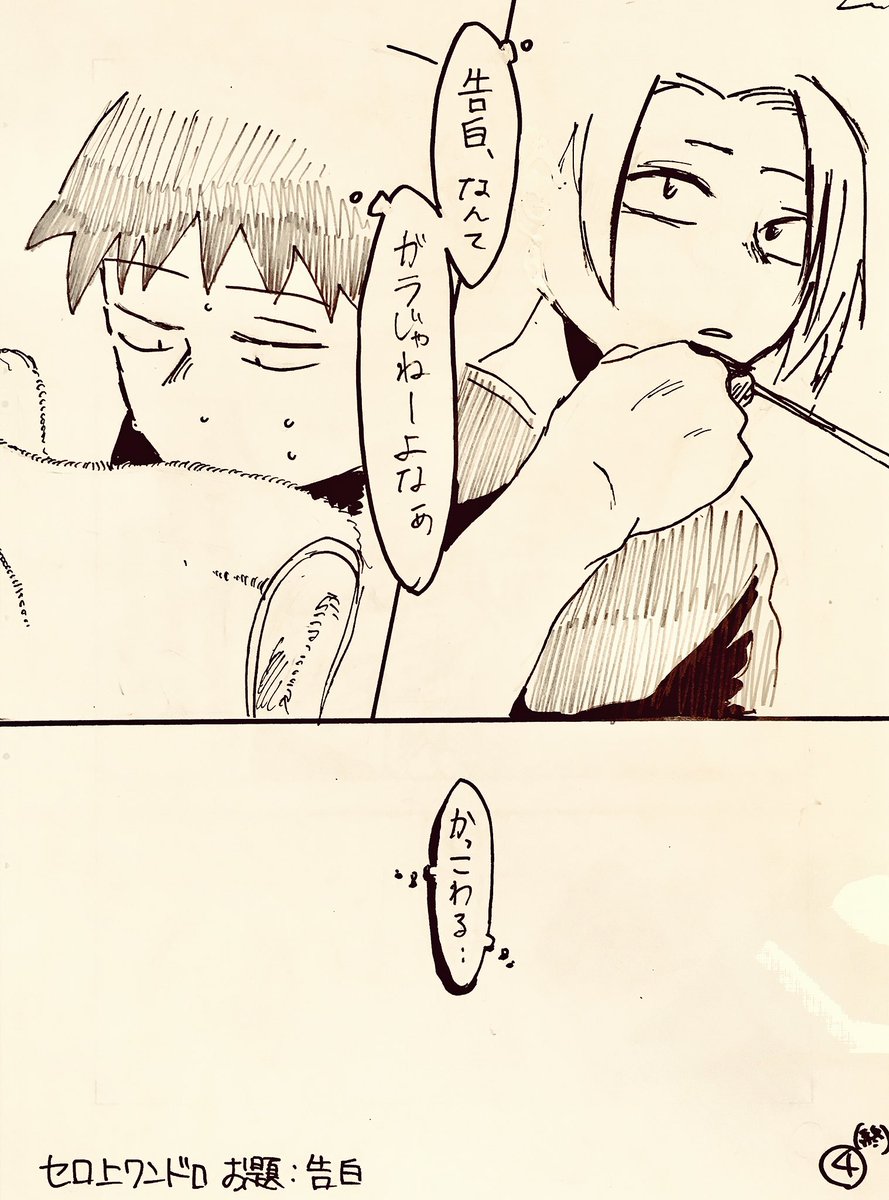 60 352 #セロ上版深夜のワンドロ一本勝負 「告白」 1コマ目から切爆注意。時間大幅オーバーと遅刻参加失礼します、、( ◜ᴗ◝ ) 18/04/28 15:51