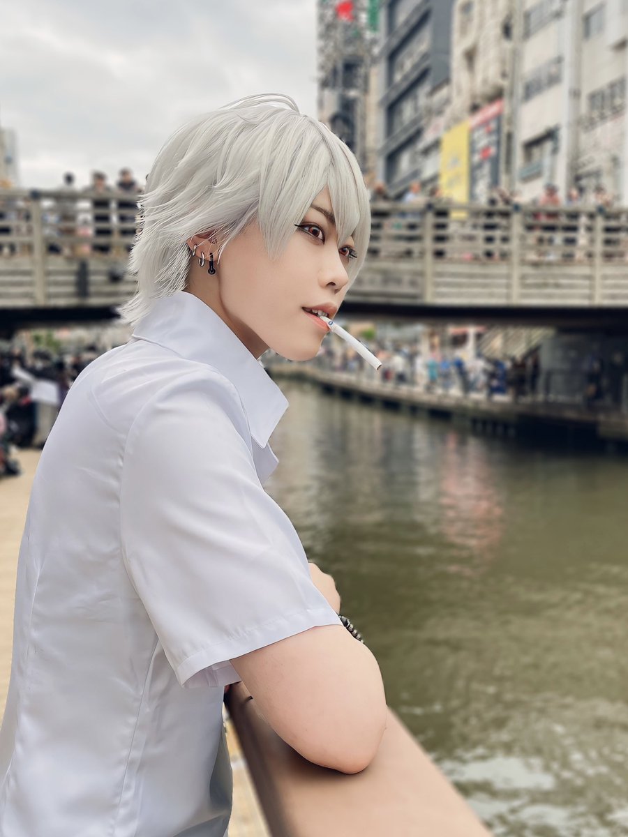 1 3 【Cosplay】⚠煙草/シガーキス⚠ hpmi なぁに見てんだ。 __________________ 左馬刻:チカゲ 乱数:優夢 @i2_lkl #アコスタ道頓堀 23/05/14 20:27