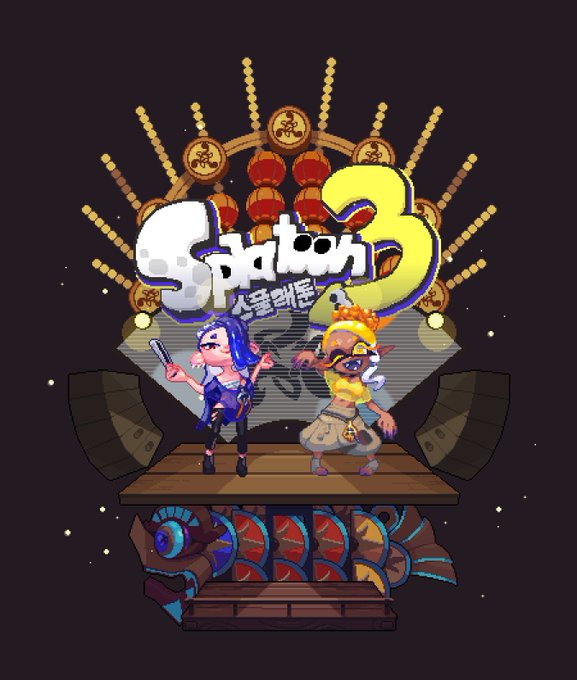 #pixelart #Splatoonart collaboration with @3h1nu who draw Frye and logo.
