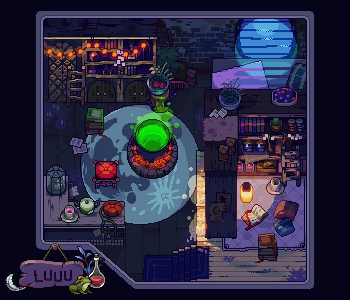 #pixelart #aseprite Wizard's cozy room (Name tag by @dimcember)