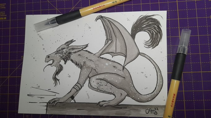 #gargoyle for #inktober2022 have a nice evening 😊 #inktober #inkpainting #painting #art #artist #traditionalart #illustration #fantasyart #grotesque #inktoberaustria #austrianartist #artchallenge #fantasy #liquitexink #smltartpaper #davincibrushes #uniballsignowhite #poscawhite