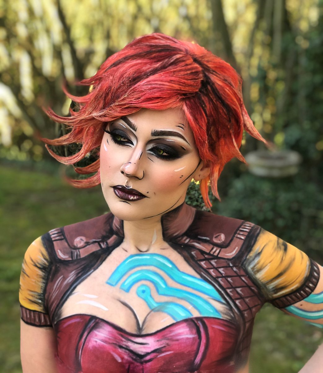 Video games : Borderlands (Lilith). 🤘🏼#makeup #makeupartist #makeupchallenge #confinementcreativechallenge #videogames #gamergirl #cosplay #bodypaint #bodypainting #cosplayer #borderlands