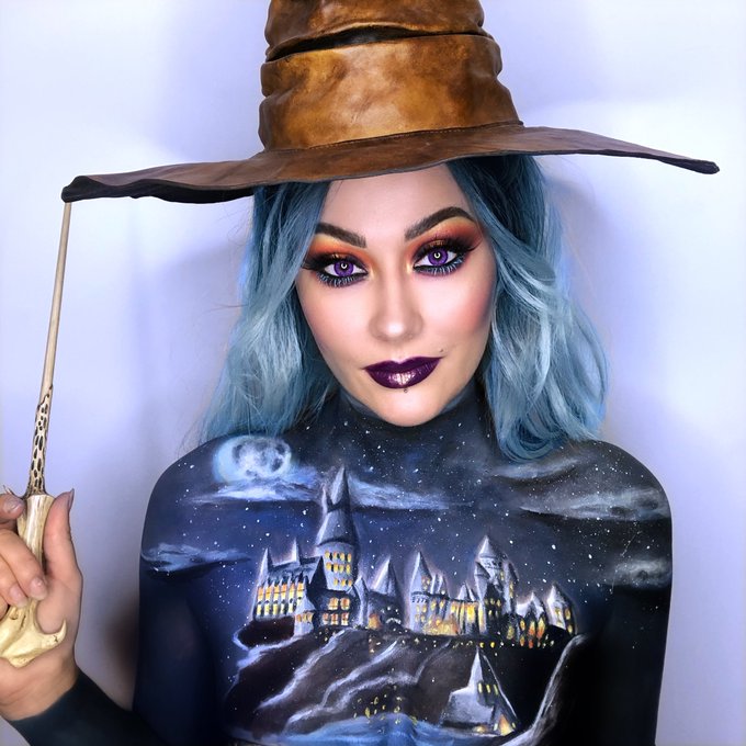 Hogwarts #bodypaint 🏰 #makeup #makeupartist #hogwarts #HarryPotter #dracomalfoy #potterhead #slytherin #Dracotok @KryolanOfficial @KryolanUK @Le_PotterTime @HPotter_France #bodypainting #cosplay #gryffindor #makeuptutorial #ravenclaw #hufflepuff @GazetteSorcier @WikiHarryPotter